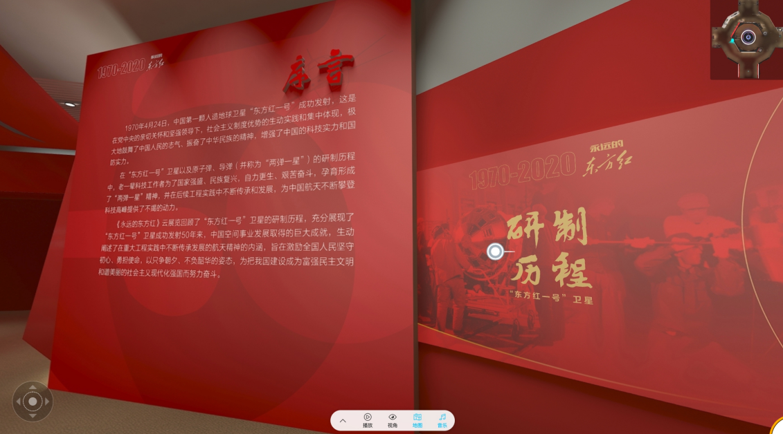 “永遠的東方紅”云展覽是中國國家博物館..次充分利用三維建模、全景漫游等數字技術,匯聚多媒體資源,在虛擬世界傾力打造的線上云展,..次在5G通訊技術的有力支撐下與多平臺聯動直播,標志著國博加速向線上拓展、向云端延伸,迎接智慧博物館時代的來臨。公眾在云展覽啟幕后可隨時隨地參與體驗、互動交流。配合此次云展覽,國家博物館聯合中國空間技術研究院還出品了三款H5小程序,邀觀眾重溫“東方紅一號”研制歷程,挑戰奏響《東方紅》曲譜,為“東方紅一號”點贊。
