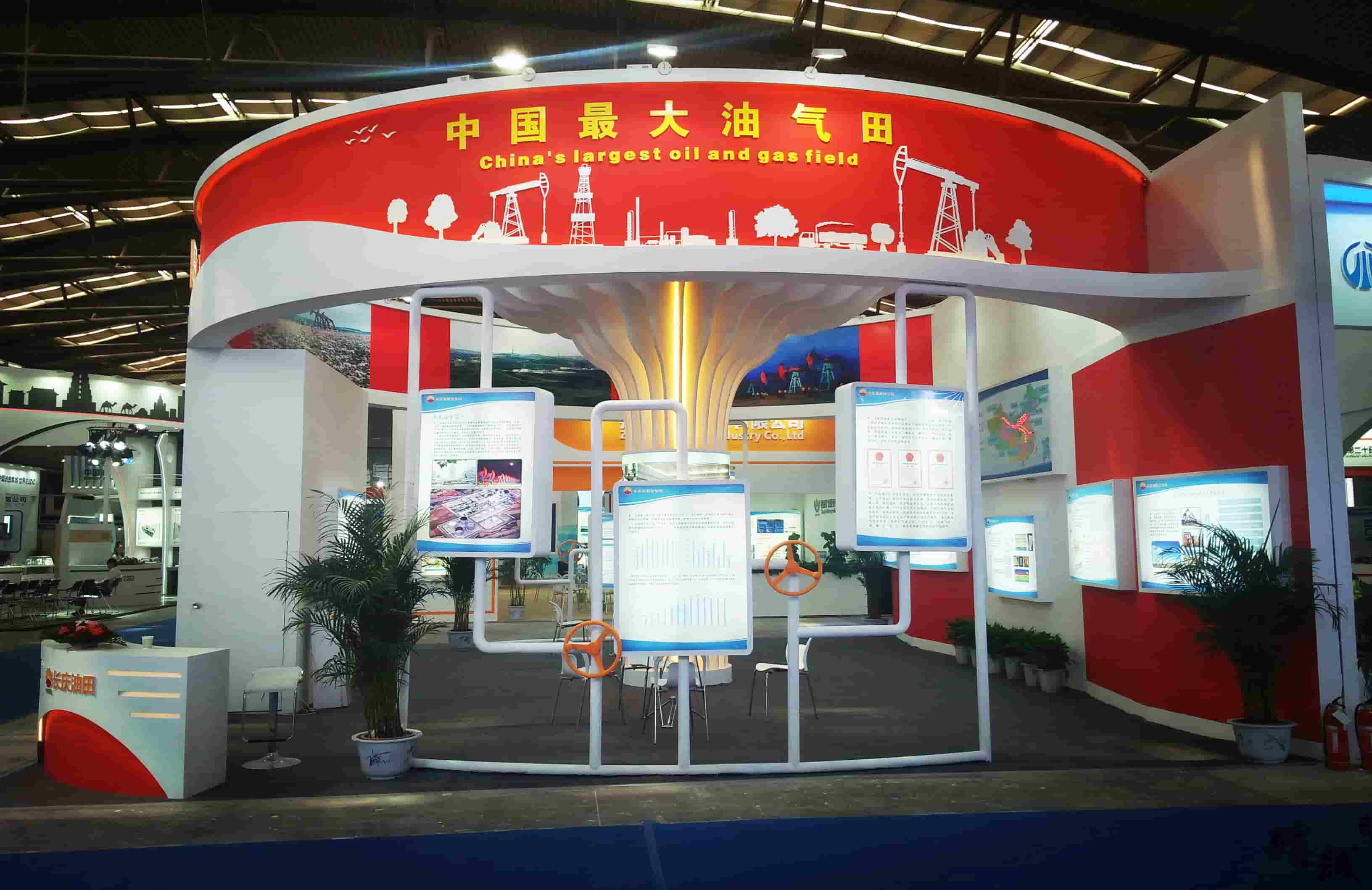 以上是我們公司(陜西精誠展覽裝飾有限公司)為長慶油田展展位施工的效果圖,可供參考,新穎的設計風格得到了客戶的喜愛,假如您也需要更好的展示您公司或者是某個項目的形象,歡迎您隨時咨詢網站上方的聯系電話,我們會針對您的實際情況設計出您滿意的,想要的裝飾展覽風格,想要找西安展覽館設計公司請找-陜西精誠展覽裝飾有限公司哦!