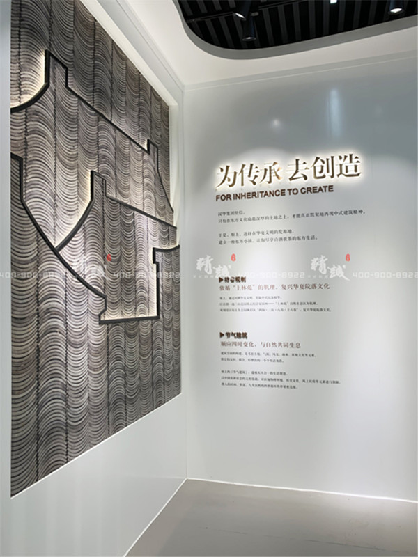 漢華·原上,一處將康養產業與生態度假和諧相融的東方小鎮。是漢華產業集團尋遍陜西大地,.終在三賢故里尋得的一片“關中巴馬長壽塬”,是聯合羅朗、柏滔與布魯盟等多家國內一線設計公司共同打造的獨創中式大規模文旅居住社區。本次品牌館的形象設計由陜西精誠展覽裝飾打造而成,主要以白色的背景,和咖啡色的組合,打造出了大氣時尚的現代風格設計,